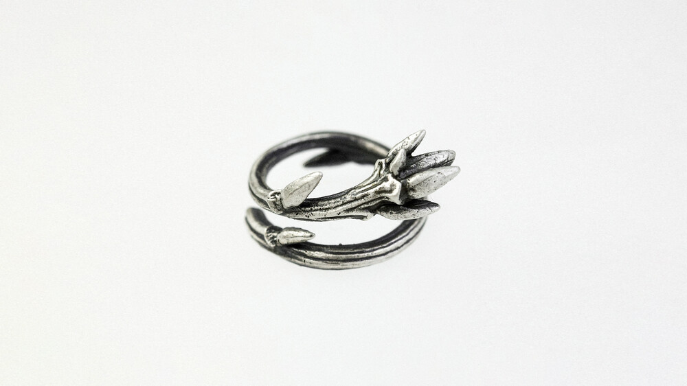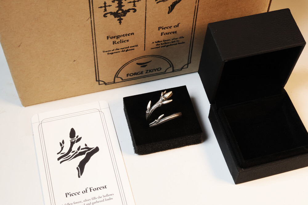 숲의 조각은 겨우내 새순을 움틔우려다 피워내지 못하고 말라간 실제 나무의 파편을 가져와 은으로 녹여낸 반지입니다. 비록 숲이 되지는 못했지만 그 조각은 은이 되어 우리의 손에서 살아갈 거라고 생각합니다.
