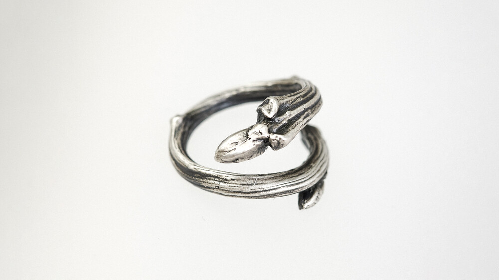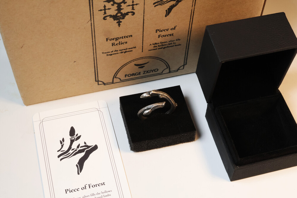 숲의 조각은 겨우내 새순을 움틔우려다 피워내지 못하고 말라간 실제 나무의 파편을 가져와 은으로 녹여낸 반지입니다. 비록 숲이 되지는 못했지만 그 조각은 은이 되어 우리의 손에서 살아갈 거라고 생각합니다.