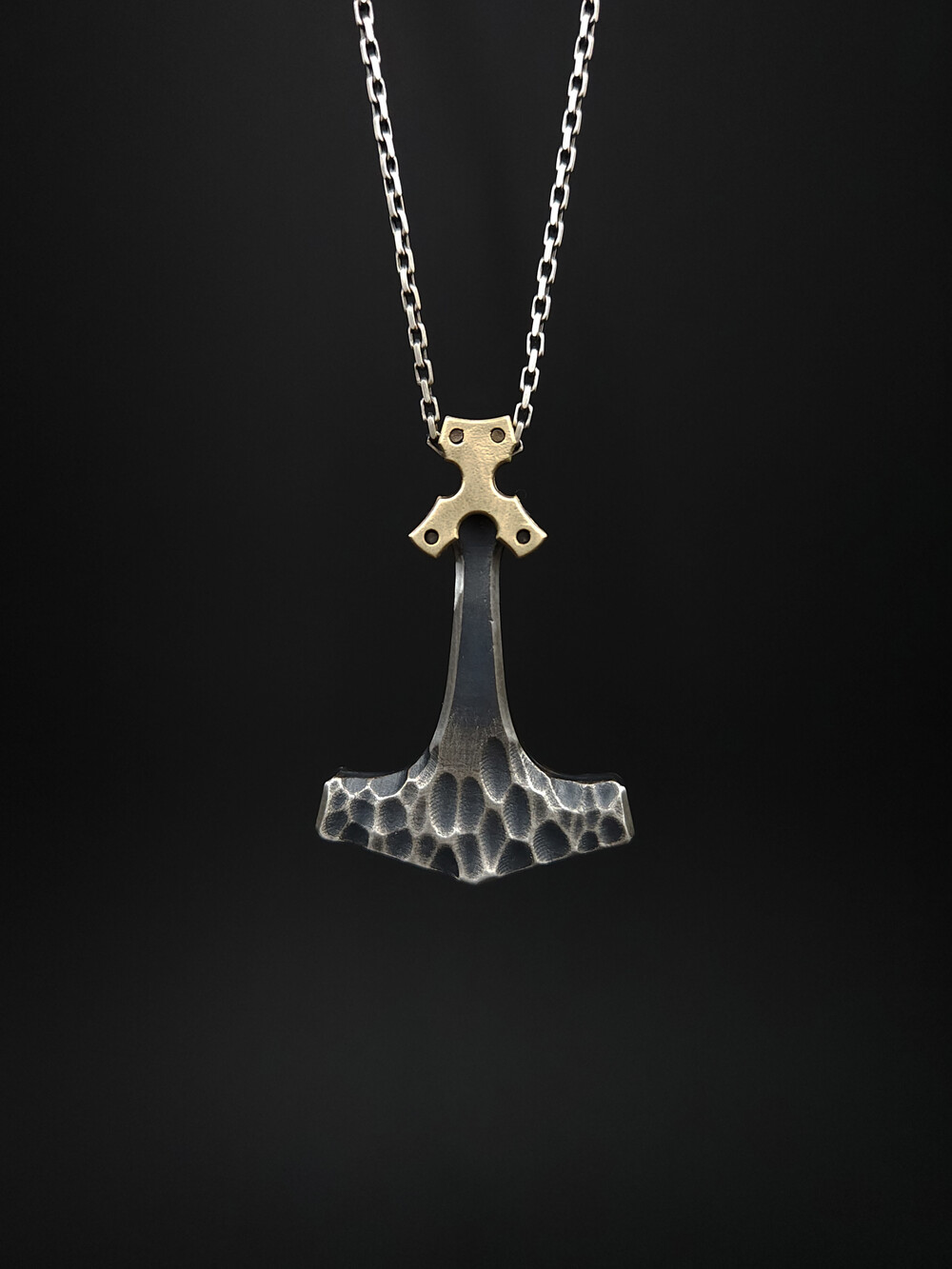 요석 머리부 펜던트는 요석 파편 펜던트와 함께 요석 시리즈로 출시된 제품입니다. 은으로 주조하고 흑착색을 한 후 빛을 받는 부분만 벗겨낸 뒤 황동으로 디자인한 연결부에 자연스레 맞물리게 만든 작품입니다.