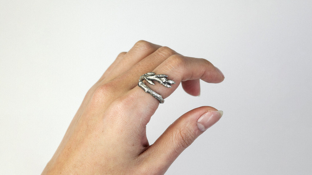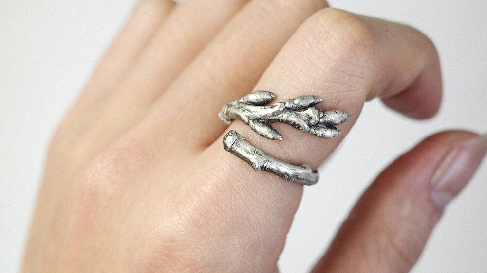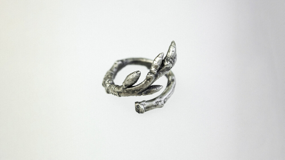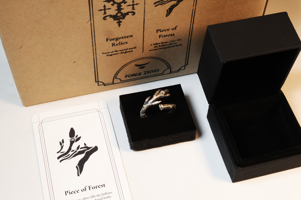 숲의 조각은 겨우내 새순을 움틔우려다 피워내지 못하고 말라간 실제 나무의 파편을 가져와 은으로 녹여낸 반지입니다. 비록 숲이 되지는 못했지만 그 조각은 은이 되어 우리의 손에서 살아갈 거라고 생각합니다.