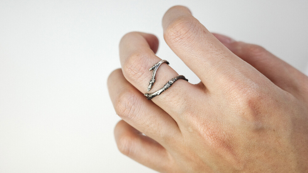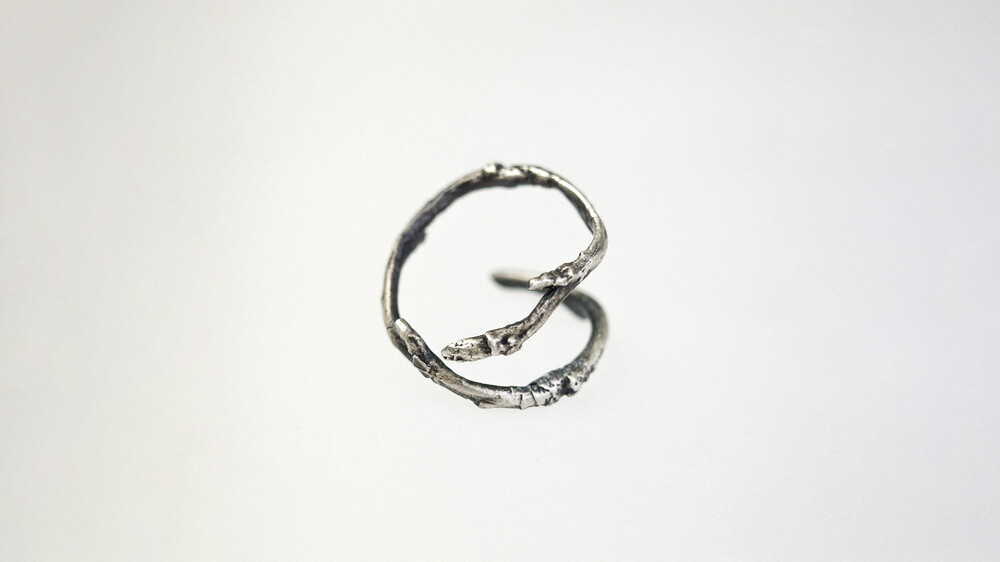 숲의 조각은 겨우내 새순을 움틔우려다 피워내지 못하고 말라간 실제 나무의 파편을 가져와 은으로 녹여낸 반지입니다. 비록 숲이 되지는 못했지만 그 조각은 은이 되어 우리의 손에서 살아갈 거라고 생각합니다.